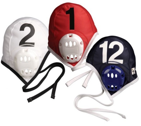В экипировку игроков обязательно входят специальные ватерпольные шапочки: белые – у одной команды, и цвета, контрастного белому, а также отличного от красного и от цвета мяча, – у другой команды (по установившейся традиции они обычно синего цвета). На международных соревнованиях шапочки должны быть снабжены ушными протекторами. На шапочках обозначаются номера игроков – от 2 до 13. Вратари выступают в красных шапочках под номером 1 (и основной, и запасной). |